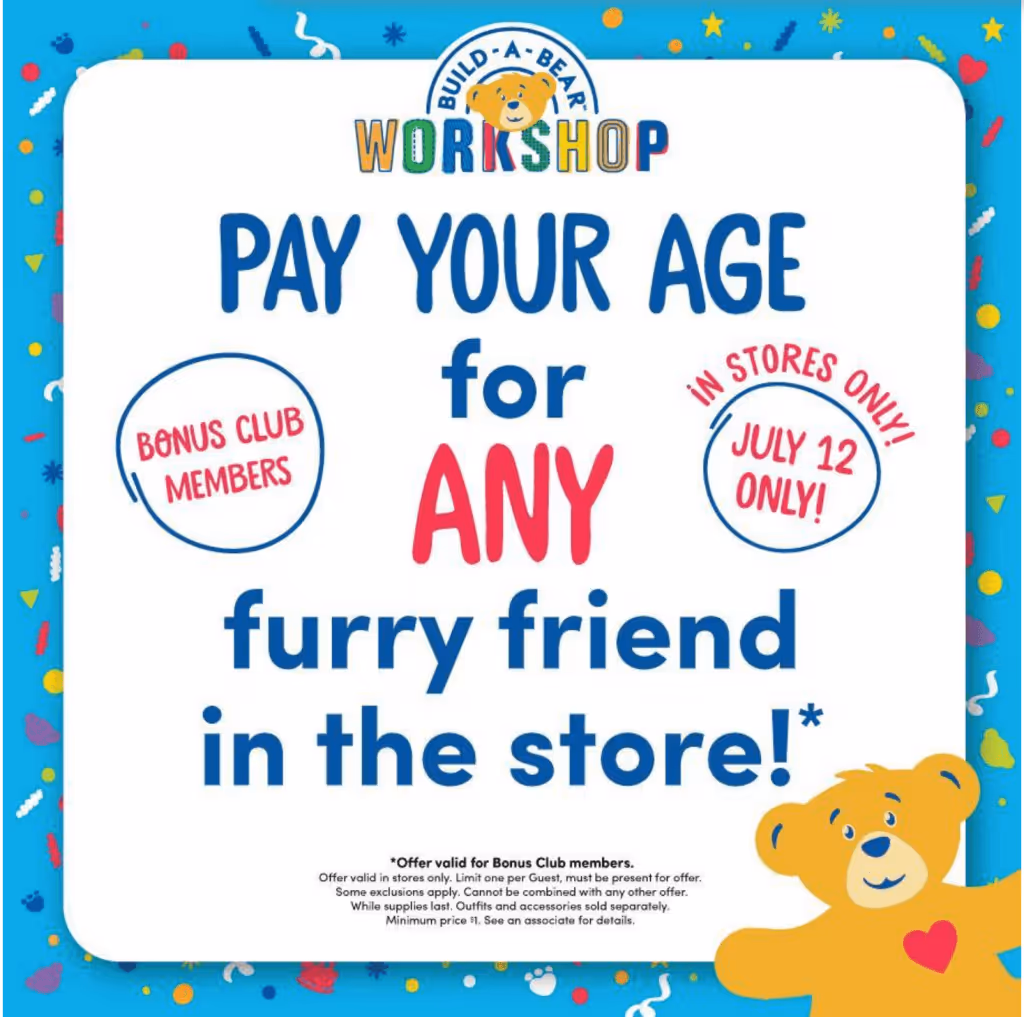 But one day, Build A Bear decided to take things one step further and make their appeal as strong for parents as it was for their kids. Thus, the ‘Pay Your Age’ promotion was born. Another straightforward one, this literally meant if your child was 5, their bear cost $5 etc, with a minimum cost of $1.
