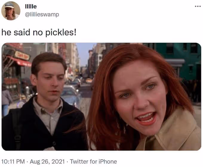 Another viral meme we loved this summer was the Mary Jane Defending Peter Parker meme, which emerged on 26th August when Twitter user @lillieswamp used this screenshot from the 2002 film Spider-Man as a reaction image.