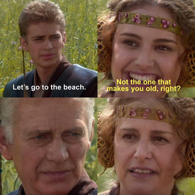 On 23rd July, the day of the film’s premiere, Twitter user @zachsilberberg posted the two first viral memes about the beach, referring to it as “the beach that makes you old”. The tweets gained over 710 retweets and 9,900 likes and 4,500 retweets and 70,500 likes in four days, respectively. We love the reference back to the Anakin and Padme meme from the previous month!