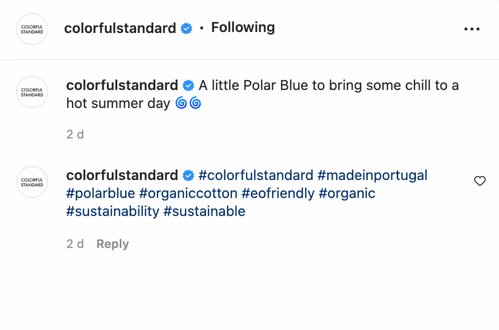 Girlfriend Collective have created an captivating catalogue of product images throughout their feed. Photographing the outfits in unique, real-life ways.